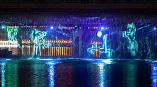 值得一提的是,這次項(xiàng)目的水簾投影系統(tǒng)方案,結(jié)合了一方地理特色、人文傳承,在一架現(xiàn)代化的高架橋上,再現(xiàn)水韻靈秀,成為淮安里運(yùn)河文化長(zhǎng)廊的又一視覺(jué)勝景。