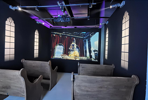 通過背投展示而出的這間俯仰式影院正在放映著世界上不同國家的風土人情,故事的主人公名為“虛無”,這個被作者幻化而出的虛擬人厭倦了被人誤解,開始前往世界各地尋找“自由”。愛普生PU系列投影機3LCD的投影技術映照出色彩逼真、真實還原的圖像,短暫十幾分鐘內(nèi),我們便隨“虛無”經(jīng)歷了一場70多個國家的環(huán)游之旅。