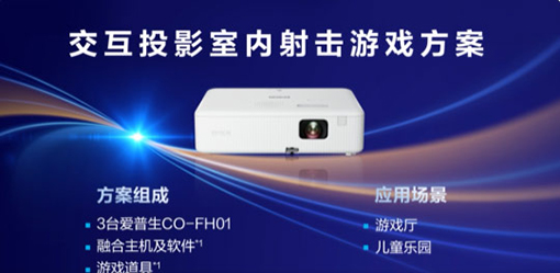 交互投影室內(nèi)射擊游戲方案,由三臺投影機(jī)通力合作,這正得益于愛普生CO-FH01