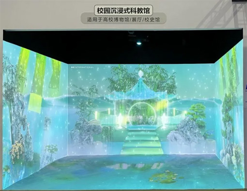 本屆高博會(huì),愛(ài)普生帶來(lái)了校園沉浸式科教館方案和AI實(shí)訓(xùn)課堂方案。校園沉浸式科教館方案應(yīng)用了愛(ài)普生激光工程投影機(jī),搭配BK