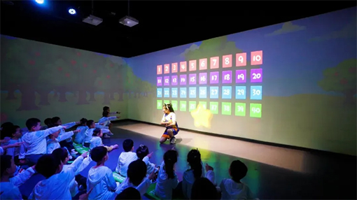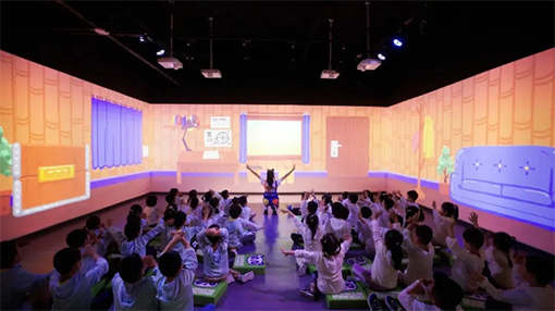 潘德是主角沉浸式兒童劇場(chǎng)里有溫暖可愛的小狐貍阿貍,有堅(jiān)定勇敢的小熊貓潘德,孩子們?cè)谶@里可以聽故事,做游戲,冒險(xiǎn)闖關(guān)。所有這些都源于聯(lián)名IP帶來(lái)的多元化、多樣化的內(nèi)容,而愛普生投影機(jī)方案的傾力支持讓這種體驗(yàn)更加真切。