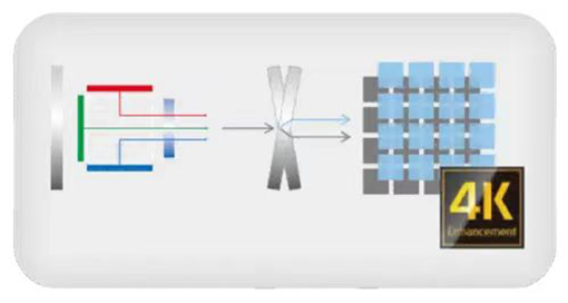 愛普生的4K增強(qiáng)技術(shù),將像素點(diǎn)斜向雙倍增強(qiáng),達(dá)到分辨率加倍的效果,使畫面更加清晰生動。