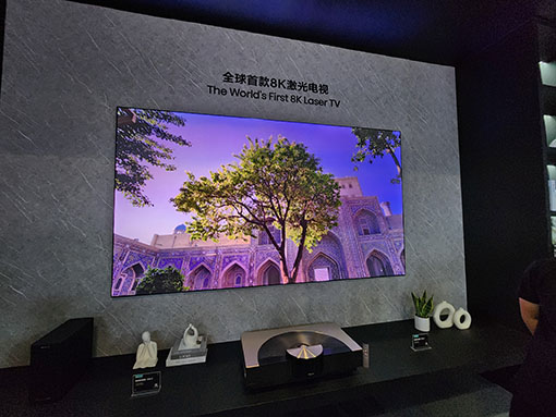海信8K激光電視120 LX也亮相展會,表現(xiàn)出更高的色彩表現(xiàn)力以及更沉浸的全景聲場。