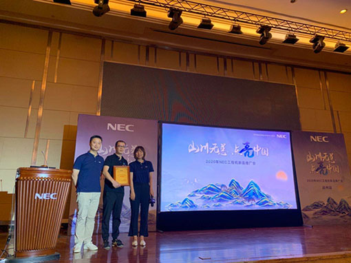 授牌儀式過后,NEC投影機產(chǎn)品經(jīng)理張凱向大家翔實地介紹了移動式全景投影、全息紗幕投影、立體模型投影等新品解決方案,F(xiàn)場,醒目又炫酷的“NEC”LOGO格外吸睛,運用2萬流明英雄系列PX2000UL+