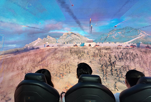 在“飛行影院”的解決方案中,2K、4K的激光投影機所帶來的高分辨率與色彩亮度在增強視覺觀感的同時為內(nèi)容增添真實感。裸眼3D的功能更是免去了佩戴眼鏡的麻煩。隨著優(yōu)質(zhì)內(nèi)容的演出,游客在巨幅畫面與震感音效的“包裹”中融入“畫中世界”,進(jìn)而將觸覺、味覺所觸及之事融匯于頭腦之中,更盡心的感受“飛行影院”帶來的沉浸式體驗。