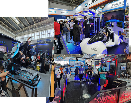 展廳中央,來自夢客、樂客、幻影星空三家VR內(nèi)容廠商聯(lián)袂獻(xiàn)上的盛宴讓無數(shù)觀眾駐足體驗。賽車、時空穿梭、射擊游戲等等體驗?zāi)J揭驗橛辛薞R設(shè)備的助力,讓體驗感飆升到極致。在進(jìn)入虛擬世界的那一刻,人們更能夠放縱自己的內(nèi)心,全心全意去感受另個世界的魅力,這也正是VR影像設(shè)施在樂園中吸睛的“天然制勝秘訣”。
