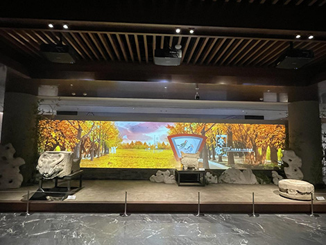 民俗文物展區(qū)內(nèi),兩臺(tái)PX803UL-BK+通過雙機(jī)背投的方式,在全息透明幕上打造的畫卷式投影,勾勒出漁民泛舟江上、農(nóng)民下田勞作的生活畫卷,引領(lǐng)觀眾置身江南風(fēng)光,領(lǐng)略湘東風(fēng)物。 |