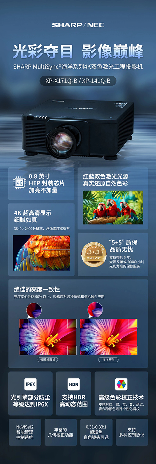 作為全球顯示行業(yè)領(lǐng)軍者,SHARP/NEC深耕商顯領(lǐng)域40余年,在整機設(shè)計、核心技術(shù)、品質(zhì)管理等方面擁有核心優(yōu)勢,不斷引領(lǐng)、締造業(yè)界標準。SHARP/NEC專業(yè)顯示產(chǎn)品群涵蓋專業(yè)投影機、數(shù)字電影放映機、專業(yè)工程顯示器、全彩LED恒晶屏及戶外箱體、軌道鏡解決方案等豐富產(chǎn)品矩陣,可以為精準細分的應用場景提供多元化、差異化的產(chǎn)品選擇。投影產(chǎn)品覆蓋LCD和DLP兩大主流技術(shù),做到了3LCD、單片DLP、三片DLP的全覆蓋,產(chǎn)品亮度從3000流明商教投影機橫跨40000流明工程投影機。