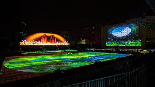 在這天,繼成都大運會開幕式后,松下工程投影機完成“接力”,再次登上內(nèi)蒙古自治區(qū)第十五屆運動會(以下簡稱“內(nèi)蒙古十五運”)、新疆維吾爾族自治區(qū)第十四屆運動會(以下簡稱“新疆十四運”)開幕式的舞臺,出色完成了開幕式的投影表演,跨越兩千多公里,點燃體育之光,接連奉上美學盛宴。