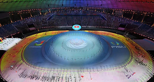 大運會開幕式中,投影機擔起地面視覺呈現(xiàn)的大任。在13000余平方米的投影面積中,松下30臺PT-SRQ50KC、30臺PT-SRZ34KC工程投影機參與其中,營造出國際體育賽事熱烈宏大的氛圍。