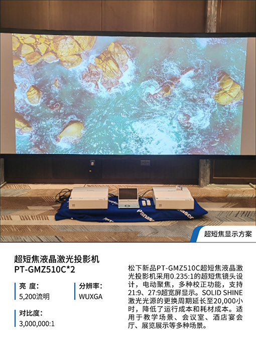 緊接著,松下電器(中國(guó))有限公司系統(tǒng)互聯(lián)營(yíng)銷公司商教投影解決方案營(yíng)銷公司技術(shù)經(jīng)理對(duì)松下商教投影機(jī)2023年產(chǎn)品線進(jìn)行了詳細(xì)介紹。針對(duì)無(wú)線高清PTWZ4001/WZ4301、激光超短焦新品PT-GMZ510C、以及長(zhǎng)壽命燈泡、激光長(zhǎng)焦、激光超短焦等全產(chǎn)品線,與應(yīng)用場(chǎng)景案例進(jìn)行了詳細(xì)介紹。使大家對(duì)松下商教投影機(jī)產(chǎn)品有了進(jìn)一步的認(rèn)識(shí)。