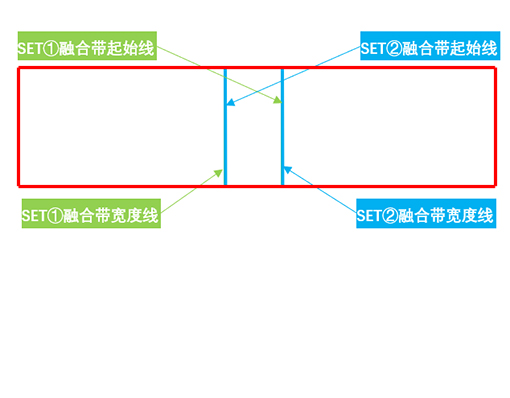 如果融合帶寬度不同,很可能在融合調(diào)試后出現(xiàn)偏色。設(shè)置相同融合帶寬度后,通過角矯正功能對齊融合帶任意一邊后,那么另一邊即使稍有誤差,也不會(huì)對最終的融合效果產(chǎn)生太大影響。