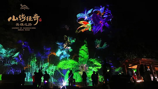 英雄之路》沉浸式夜游,是與央視IP《山海經(jīng)奇》紀(jì)錄片聯(lián)合打造的項(xiàng)目,這場(chǎng)夢(mèng)幻的光影奇旅,借助新技術(shù)、新媒介把遙遠(yuǎn)的上古神話鋪展到人們眼前,一步一山海,一夜一千年,用美輪美奐的光影喚起人們的想象力。