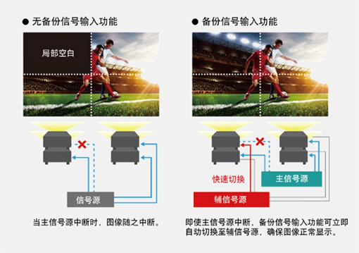 冗余的激光光學(xué)引擎(冗余電路)和信號(hào)備份功能帶來強(qiáng)大的容錯(cuò)性,可在激光模塊損壞或信號(hào)丟失情況下,保持畫面輸出,保障展演無“意外”,不負(fù)觀眾期待。