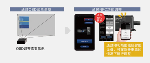使用手機(jī),最多可以對(duì)64臺(tái)投影機(jī)進(jìn)行開機(jī)、關(guān)機(jī)、輸入選擇、設(shè)置調(diào)整、鏡頭調(diào)整等操作,在最遠(yuǎn)30米的距離進(jìn)行自動(dòng)聚焦。