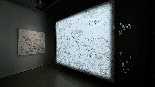 在《第二自然中》,自然事物的形態(tài)被創(chuàng)新表達(dá),絲絲縷縷、層層重疊,這些由細(xì)微形態(tài)匯聚成的畫面,對投影設(shè)備的分辨率提出了更高的要求。