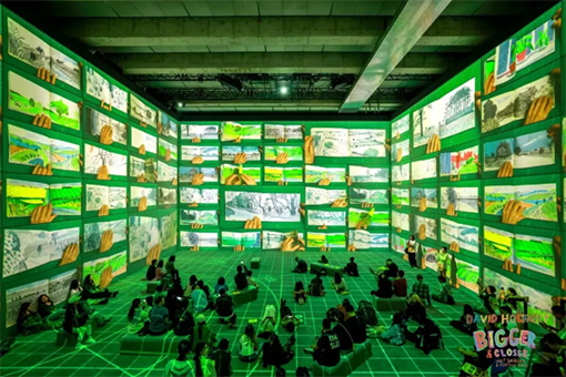 這個(gè)名為《大衛(wèi)·霍克尼:更大,更近(當(dāng)然不是更小更遠(yuǎn))》的沉浸式藝術(shù)展,坐落于上海西岸美術(shù)館的一個(gè)長(zhǎng)20米、寬15米、高9米的空間內(nèi)。