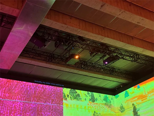 在這場(chǎng)沉浸式藝術(shù)展中,投影機(jī)無(wú)疑是核心設(shè)備。松下在全球各大項(xiàng)目久經(jīng)考驗(yàn)的5萬(wàn)流明和3萬(wàn)流明級(jí)的工程投影機(jī)被采用,可以實(shí)現(xiàn)超4K分辨率,結(jié)合三芯片DLP成像系統(tǒng)與松下SOLIDSHINE激光光源技術(shù),可以呈現(xiàn)高清晰、高亮度、精準(zhǔn)色域與高對(duì)比度的畫(huà)面。這讓霍克尼作品的每一個(gè)細(xì)節(jié)都能栩栩如生,鮮艷色彩得以完美還原。