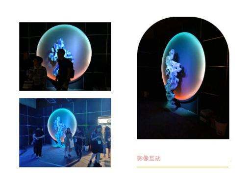 通過裝置的方式表達出充滿韻律的空間結構,同時作為影像載體使二維的影像具有三維性質,從而使空間更立體、更有層次。
