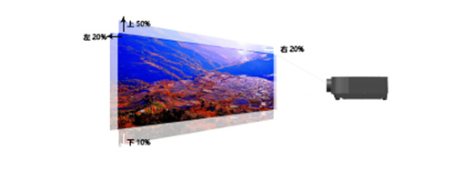 XG-EG100A新品工程投影機(jī)具有鏡頭移動功能,可以通過菜單將畫面無損平移,為實現(xiàn)拼接和融合功能提供便利,用戶可以輕松地調(diào)整投影圖像的位置。垂直方向最大調(diào)節(jié)范圍為50%(向上),10%(向下),水平方向最大調(diào)節(jié)范圍為±20%。