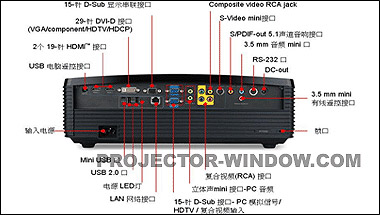 作為一款行業(yè)用機(jī),宏碁P7205投影機(jī)接口非常全面,輸入接口:Analog RGB/Component