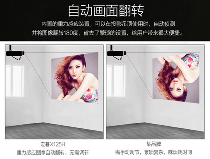 集智能化與人性化于一身的便捷安裝設(shè)計(jì)可謂處處為用戶(hù)省心著想。頂部換燈設(shè)計(jì):燈泡模組設(shè)計(jì)在靠近機(jī)器正面,相對(duì)底部燈泡設(shè)計(jì)更加變便利,即使吊頂使用時(shí),更換燈泡也不用拆卸投影機(jī);梯形校正:梯形校正功能,用戶(hù)無(wú)論將投影機(jī)放置高于或低于銀幕,都可以觀看到標(biāo)準(zhǔn)的矩形畫(huà)面,無(wú)論正投還是吊裝投影;圖像自動(dòng)翻轉(zhuǎn):內(nèi)置的重力感應(yīng)裝置,可以在投影吊頂使用時(shí),自動(dòng)偵測(cè)并將圖像翻轉(zhuǎn)180度。如此用心之作,無(wú)論是固定位置使用,還是多場(chǎng)景變換,Acer宏碁X125H和X135WH都能以“隨遇而安”的適應(yīng)能力為用戶(hù)帶來(lái)便捷、高效的使用體驗(yàn)。