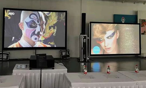 4K600STZ新品,投射寬度×高度=3300mm×2100mm的弧形幕,著重展示單臺(tái)大尺寸投影+曲面投影中心點(diǎn)與邊緣聚焦一致性,獲得現(xiàn)場(chǎng)嘉賓的一致好評(píng)。