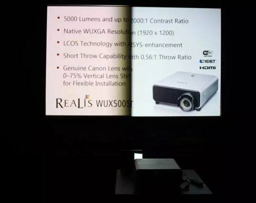 在現(xiàn)場,Canon還別具一格展示了基于3LCOS顯示技術(shù)的WUX500ST和基于1DLP顯示技術(shù)的Canon