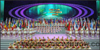 伴隨著演出進(jìn)程,科視投影隨之變幻,助閻維文、劉德華、成龍等巨星大放異彩。