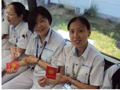 為緩解這一現(xiàn)象,愛普生拓優(yōu)科夢(mèng)蘇州配合政府下達(dá)的無(wú)償獻(xiàn)血計(jì)劃,長(zhǎng)期開展了義務(wù)獻(xiàn)血活動(dòng)。一大早,蘇州紅十字會(huì)血站的采血車早早開進(jìn)了廠區(qū)內(nèi)。雖然正值炎熱的夏季,但悶熱的天氣卻絲毫沒(méi)有影響前來(lái)獻(xiàn)血的員工的積極性,大家主動(dòng)填表、登記和參加體檢,共72名員工進(jìn)行了獻(xiàn)血,獻(xiàn)血總計(jì)20100毫升。紅十字會(huì)血站為每名獻(xiàn)血員工當(dāng)場(chǎng)頒發(fā)了《無(wú)償獻(xiàn)血證》,對(duì)獻(xiàn)血員工的無(wú)私奉獻(xiàn)精神給予了高度贊揚(yáng)。一位參與義務(wù)獻(xiàn)血的員工表示:“通過(guò)獻(xiàn)血不但能促進(jìn)血液循環(huán),對(duì)人的身體十分有好處,并且通過(guò)獻(xiàn)血還可以挽救許多人的生命,因此這個(gè)活動(dòng)開展得很有意義。”