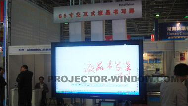 65英寸交互式液晶書寫屏亮相本次展會,跟傳統(tǒng)電子白板不同,它集成了投影機、傳統(tǒng)電子白板、液晶電視、音響等諸多辦公設備功能,加上特殊的書寫軟件,使信息處理更為方便,演示更為生動,不需要復雜的安裝調(diào)試,降低了系統(tǒng)成本。一體化的設計使得具有易移動的特點。傳統(tǒng)電子白板使用時投影機要懸掛于屏幕前方,安裝后想改變電子白板的位置很困難,而擺脫了投影機的束縛,他的腳座上還裝有滑輪,可以輕松、方便的移動,隨時調(diào)整觀看的角度和位置,充分滿足用戶的使用需要。