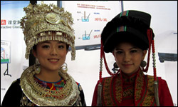少數(shù)民族姑娘展示鴻合科技取得的優(yōu)秀成果 |