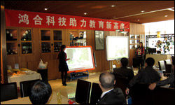 張樹江先生表示鴻合科技此次也攜帶了日立全系列投影機、四大系列電子白板(紅外、壓感、電磁、光學影像)、交互式書寫屏、視頻展臺等全線多媒體教學產(chǎn)品出席了此次普教展。希望在展會中將頂尖的交互技術(shù)和完備的教學解決方案完美的展現(xiàn)給廣大的參展者。在展示產(chǎn)品的同時,更表現(xiàn)了鴻合致力交互貼近教育的整體技術(shù)水平和綜合業(yè)務(wù)實力。