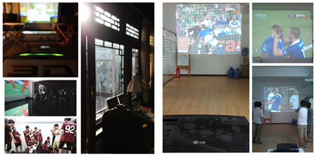 傳統(tǒng)家居環(huán)境在改造設(shè)計中也在不斷加入投影機元素,不管是出于商業(yè)目的還是私人聚會,都因投影機的應(yīng)用帶來了震撼的視覺體驗。今年3月,北京后海附近出現(xiàn)的國內(nèi)首家3D電影咖啡館,即是利用老北京四合院搭配一臺LG投影機CF3DA進行改造而成。顧客坐在店里,品著香濃的咖啡,觀看精彩的3D大片,為3D電影愛好者帶來一個絕佳的觀影交流基地。3D投影機的技術(shù)和效果堪比電影院里的大片,同時,產(chǎn)品的易操作性和智能化,大大提升了影片播放的頻率。而在歐洲杯開賽之前,一名來自福建的球迷朋友,利用投影機將自家的一居室改為了家庭影院,邀請眾多好友在歐洲杯比賽日期間前來共同看球、論球。