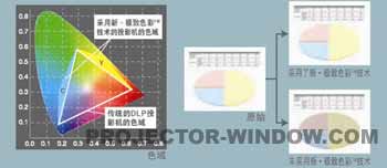 5段(RGBWY)色輪與6段(RGBWYC)色輪顯示效果對(duì)比 |