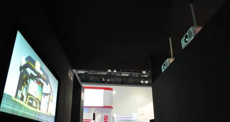 在今年4月舉行InfoComm China 2012展會上,三菱工程投影機(jī)憑借著高亮度、高畫質(zhì)、高可靠性的三大優(yōu)勢吸引了業(yè)界廣泛的關(guān)注。特別是三菱特意在展會上通過兩臺三菱G8系列DLP雙燈工程投影機(jī)拼接應(yīng)用方案,其出色拼接顯示效果,讓許多參觀者都錯以為是背投拼接墻投影的畫面。 |