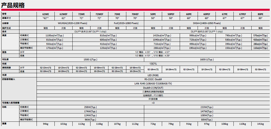 三菱電機推出的新一代LED光源DLP顯示墻,定位于最高端應用領(lǐng)域,提供最具競爭力的產(chǎn)品性能,為重點用戶群如電信、銀行、交通、公安、政府、能源、公共事業(yè)等提供定制化的整體解決方案。其最大的特色是“高亮節(jié)能”,新一代的LED光源不僅將亮度提升到業(yè)界最高水平,更擁有4