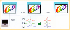 多臺(tái)顯示器拼接時(shí),可能個(gè)別顯示器顏色有差別使整體顏色不一致。因此出廠前已經(jīng)對(duì)顯示器進(jìn)行亮度和色溫的調(diào)節(jié),盡可能減小色差。 |