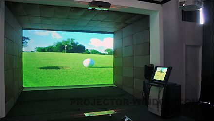 室內(nèi)虛擬高爾夫,出于場(chǎng)地空間的限制,和安全、人性化考慮,投影機(jī)安裝在畫(huà)面斜后方,NEC