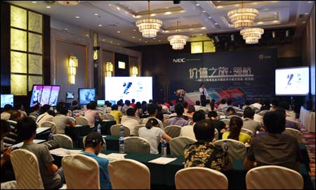 [投影之窗報(bào)道] 2012年6月19日,NEC打造的“價(jià)值之旅∙領(lǐng)航”高端工程液晶顯示器應(yīng)用方案交流會在武漢隆重舉行。NEC(中國)顯示產(chǎn)品解決方案事業(yè)部領(lǐng)導(dǎo)并與經(jīng)銷商、集成商、業(yè)內(nèi)人士共同分享并體驗(yàn)了NEC目前最為高端的液晶顯示器產(chǎn)品以及多樣化的顯示解決方案,使得在場觀眾充分領(lǐng)略到了科技智能、品質(zhì)卓越的NEC為全行業(yè)提供最優(yōu)質(zhì)顯示解決方案的能力。4點(diǎn)觸控、Hipewall、一體化OPS等先進(jìn)技術(shù)均在本次交流會中得到了良好的展現(xiàn)。