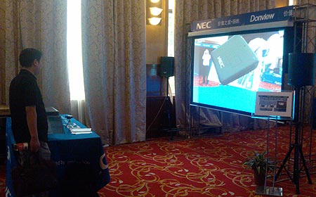 增強現(xiàn)實是指通過電腦技術(shù),將虛擬的信息應用到真實世界,真實的環(huán)境和虛擬的物體實時地疊加到了同一個畫面或空間同時存在的技術(shù),一般用于古跡復原,虛擬播放,展覽展示,影視制作的場合,PX700W+采用六段色輪技術(shù)保證增強現(xiàn)實方案色彩真實還原。通過彩頁置于攝像頭下,采集后顯示的彩頁上會自動浮現(xiàn)三錐投影機,同步播放投影機音頻介紹。 |