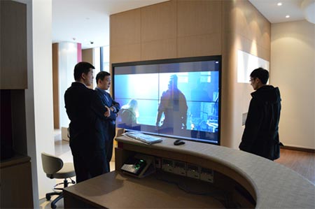 位于醫(yī)院大廳的X551UN拼接大屏幕主要用來進(jìn)行醫(yī)藥、醫(yī)師信息的發(fā)布,搭載OPS內(nèi)置PC的X551UN僅需一根電源線連接顯示器就能實(shí)現(xiàn)信息發(fā)布,在四臺(tái)顯示器的其中一臺(tái)里裝上OPS,其余三臺(tái)利用DVI信號(hào)環(huán)進(jìn)環(huán)出即可,無需外置電腦和長距離信號(hào)線,避免了信號(hào)衰減、減少了設(shè)備間占用。此外,X551UN拼接大屏幕加載了紅外6點(diǎn)觸摸技術(shù),大屏幕觸摸在信息發(fā)布之余也可以為小朋友提供趣味互動(dòng)游戲,多人同屏游戲功能,讓孩子、家長可以一同游戲,為等待就診的枯燥時(shí)間平添了幾分歡笑。
