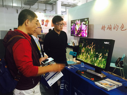 工作人員現(xiàn)場為參會嘉賓講解NEC顯示器的特點(diǎn) |