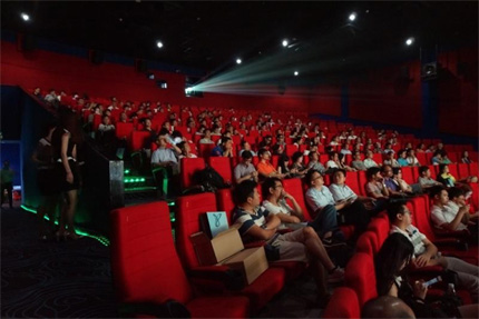 廣州巡展參會(huì)嘉賓現(xiàn)場(chǎng)體驗(yàn)NEC激光電影機(jī)放映效果