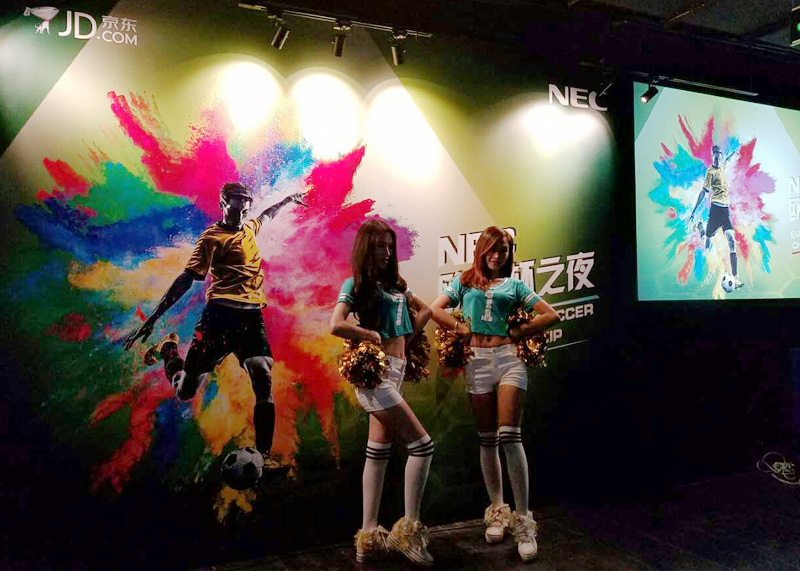 21:00,2016年歐洲杯意大利VS瑞典的對決正式開始,NEC無屏電視投射出百寸屏幕,其高亮度和廣色域,將綠茵球場真實還原,令觀眾們仿佛置身歐洲杯比賽現(xiàn)場一般。各隊球迷吶喊助威、把酒言歡,一時間烤串、啤酒、歡笑、尖叫與身穿球衣的辣妹,一再將現(xiàn)場氣氛推向高潮。
