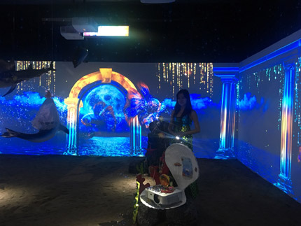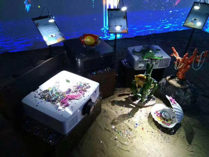 此次IFC展會(huì)期間,NEC與鴻合科技別出心裁的將整個(gè)展廳做成了“海底世界”,吸引眾多現(xiàn)場(chǎng)觀眾駐足觀看。由6臺(tái)NEC最新PA系列液晶工程投影機(jī)通過融合技術(shù),創(chuàng)造出超大無縫的沉寖式三折幕逼真畫面,讓視野更寬,更具沖擊力和真實(shí)感,并配合貝殼、細(xì)沙等實(shí)物元素,使觀眾在高質(zhì)量的視聽環(huán)境包圍之中,產(chǎn)生身臨其境的感覺,如同置身于炫彩繽紛的海底世界。據(jù)悉,此展廳采用的是NEC最新推出的充滿沉寖感的三面墻體CAVE解決方案,該方案所使用的NEC全新PA