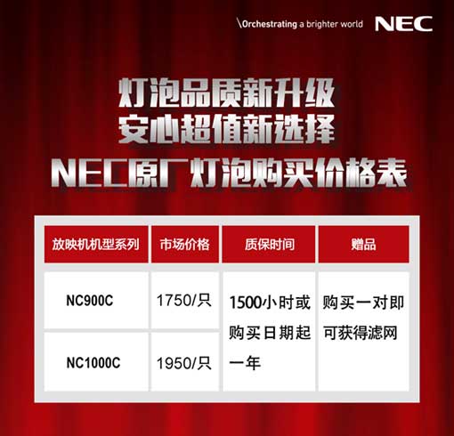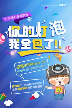 與此同時,對于未使用NEC原廠燈泡的客戶,NEC還貼心地推出了燈泡+保險套餐的超值服務(wù)。1對新燈+1年保險,僅需6000元!