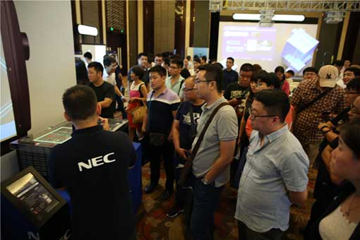 與會(huì)嘉賓圍觀NEC獨(dú)家專利“CCT內(nèi)循環(huán)全密封散熱系統(tǒng)”