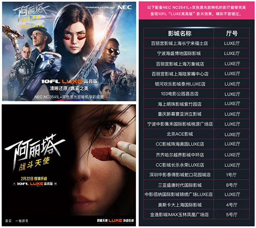 NEC放映機真實還原影片細(xì)節(jié),阿麗塔“觸手可及”