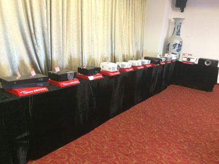 超寬屏激光解決方案,也是激光光源的方案首次和經(jīng)銷商朋友見面。激光光源將是未來發(fā)展的趨勢(shì),預(yù)測(cè)至2020年,全球激光顯示投影機(jī)數(shù)量將達(dá)到1860萬臺(tái),我國將達(dá)到215萬臺(tái),占比將超過20%。奧圖碼2015年將會(huì)持續(xù)推出激光光源新品,推動(dòng)整個(gè)市場(chǎng)的發(fā)展。